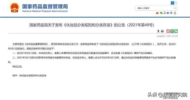 化妆品的分类规则与分类目录