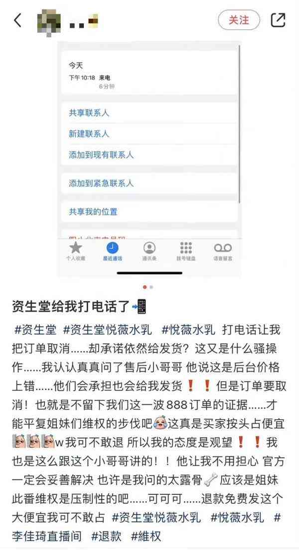 与此同时,也有不少拍得888元套装还未收到货的消费者发文称,接到了资生堂客服的电话,对方要求直接取消该订单,但承诺作为补偿,所拍的套装将全部赠予。