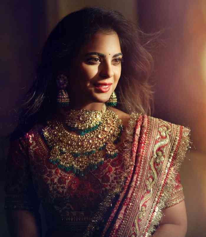 儿媳Shloka的画风也差不多,每张照片都让人不自觉把视线聚焦在瀑布般Bling Bling的珠宝上~
