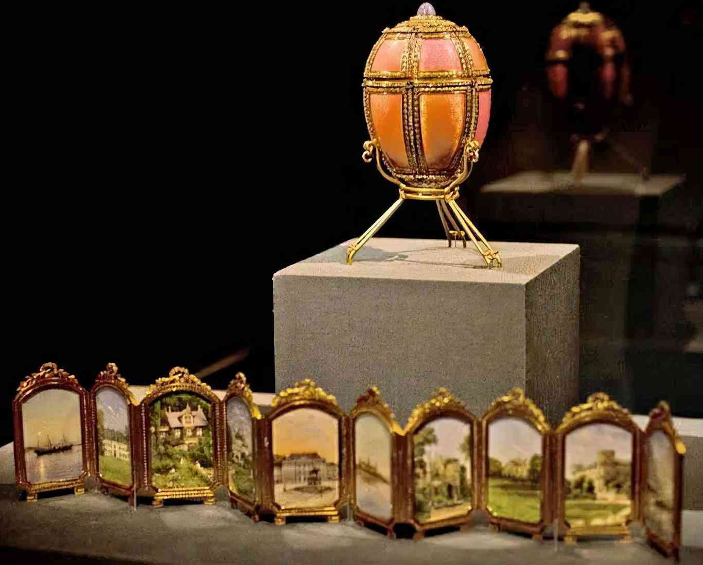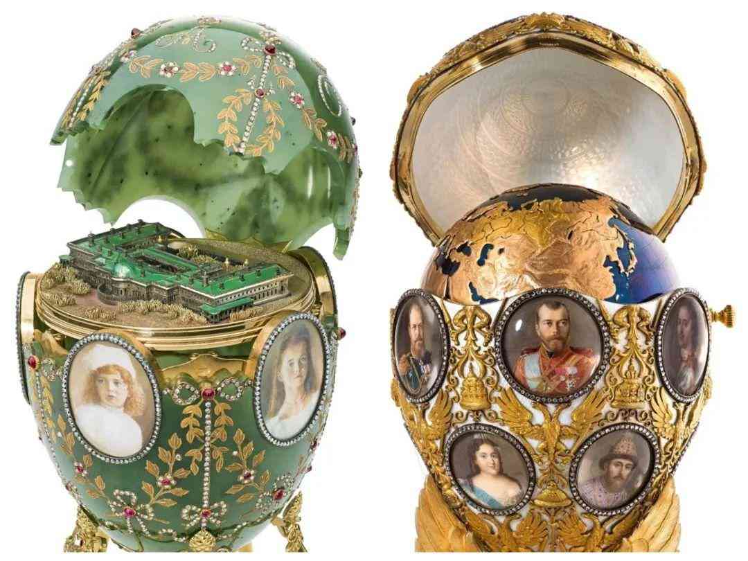 不但外表华丽丽,内里更是暗藏玄机,亚历山大宫、人物肖像甚至俄罗斯帝国地图,都被巧妙地搬进了“蛋”里。