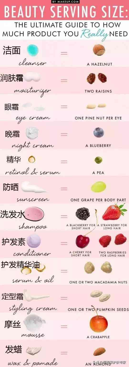可能有些人会说这么短时间用不完,那我想说你每天就用那一丁点要用到猴年马月才能用完和见效果!然后护肤品过期了还不舍得扔,不是用来涂脚、就是涂手还说效果好,我就问手和脚就不是你的皮肤么?别再舍不得了,买来就是用的,不舍得用是给喂细菌的吗?这里护肤品每种品类使用量看过来。