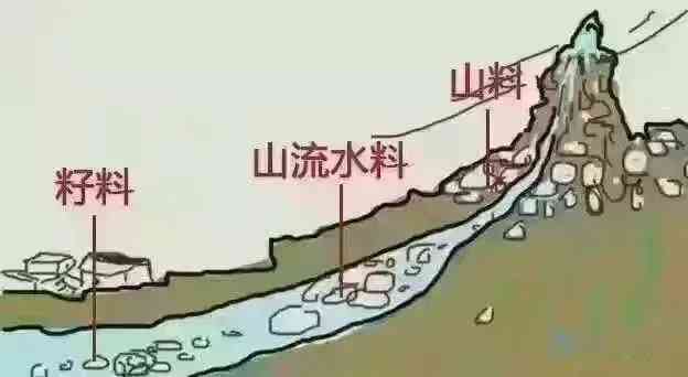 和田玉的产状主要分为4种:山料、山流水、籽料、戈壁料。