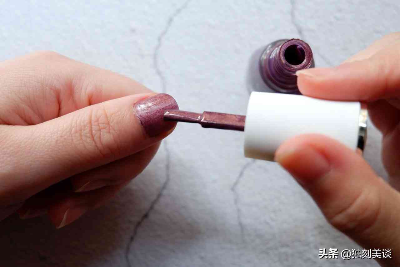 用一瓶透明指甲油加入喜爱的眼影粉,搅拌均匀后就是一瓶自制色号的甲油了。