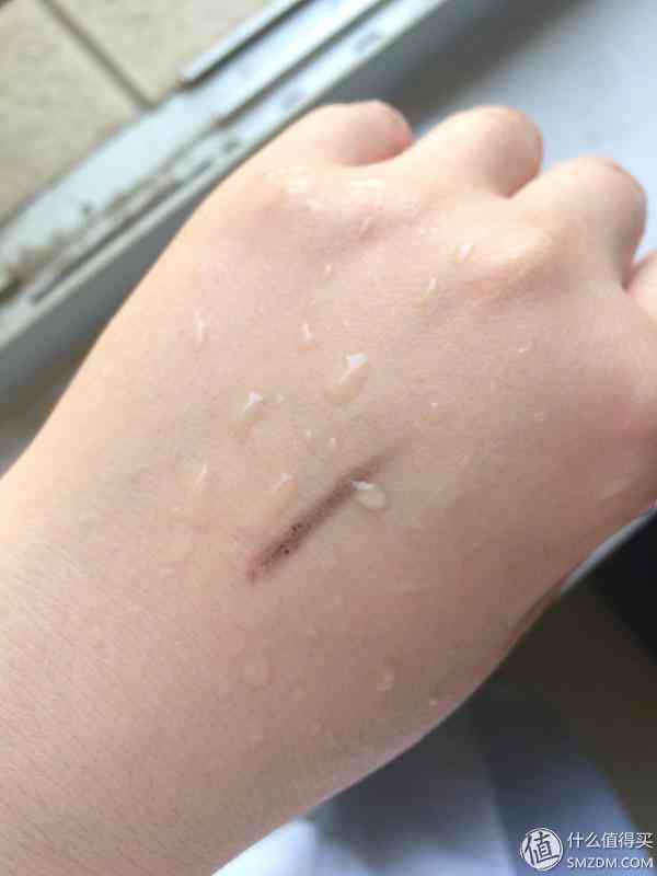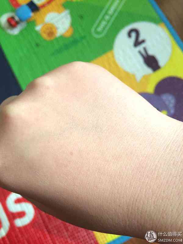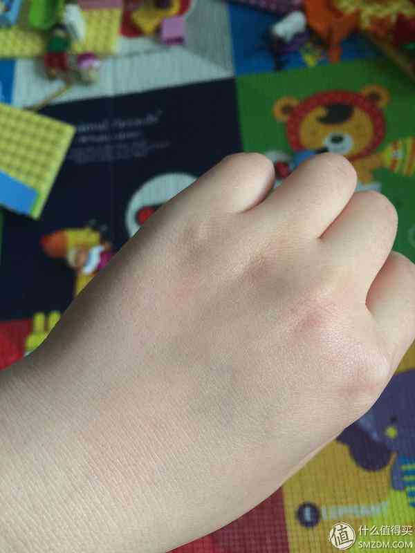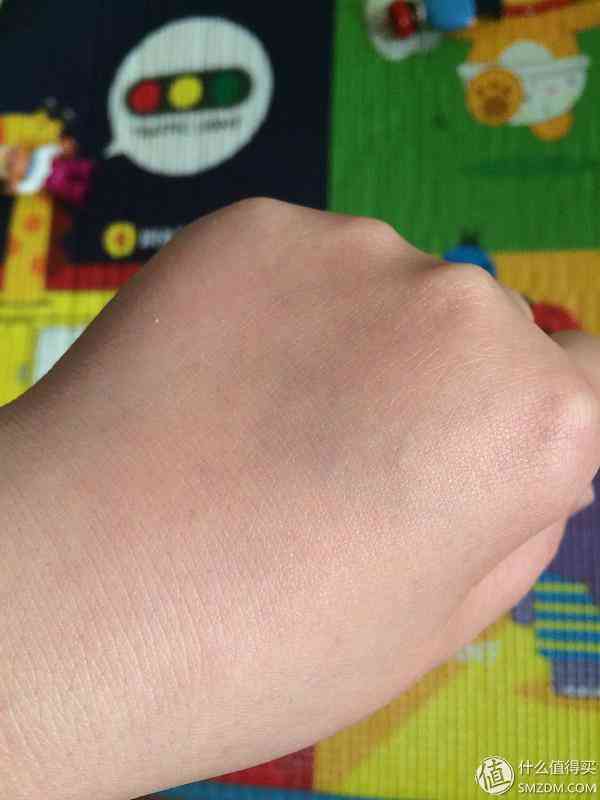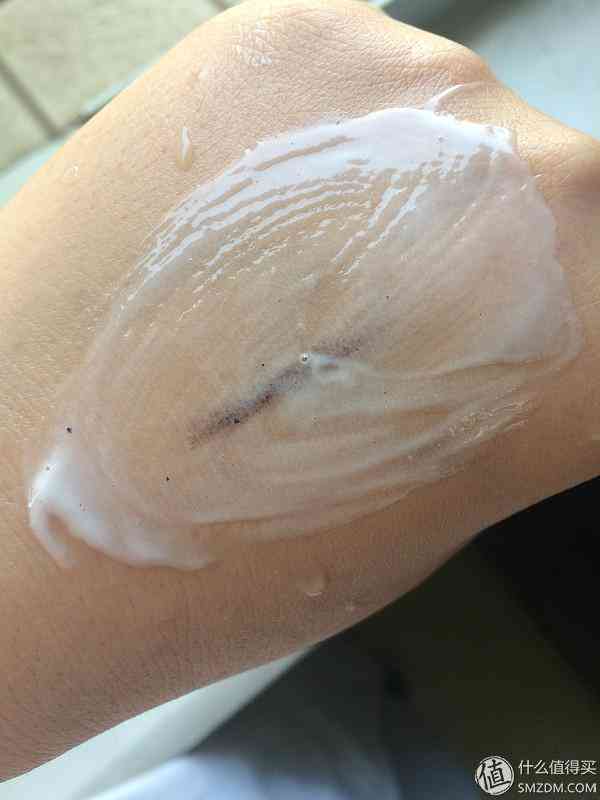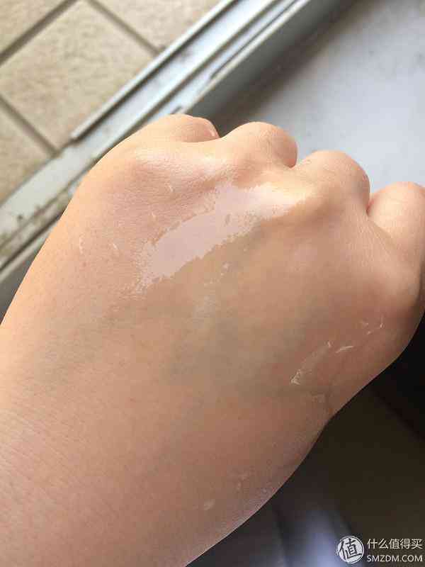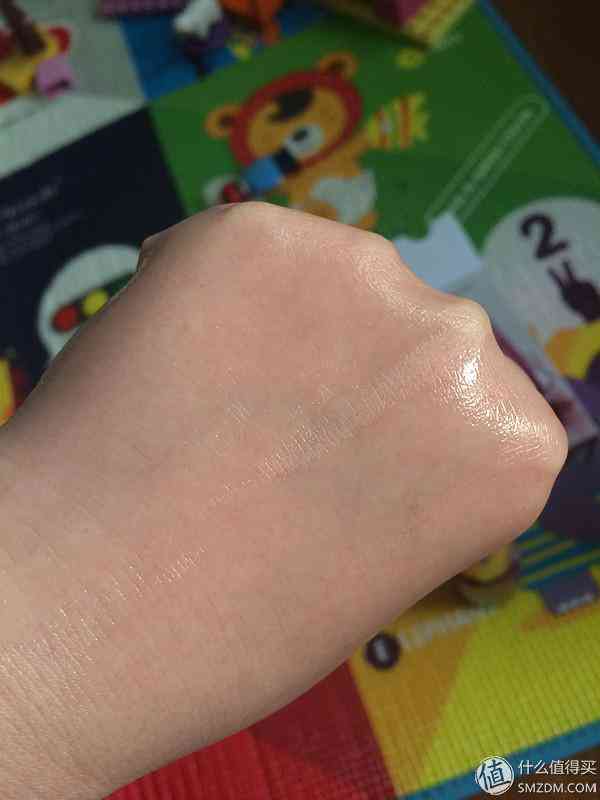 涂开以后,可以看到中间有点干干的地方是分界,上面是muji,下面是韩束,涂开,吸收都很快,另加右手裸上,看起来木有什么差别呵
