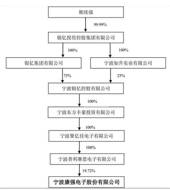 除了ST银亿,A股康强电子也是熊续强的实控公司之一。股权结构如下: