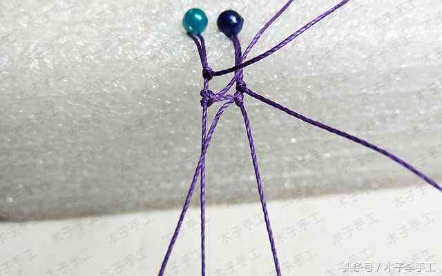 30、以外面2根线为轴线,中间两根线为绕线,做单向平结