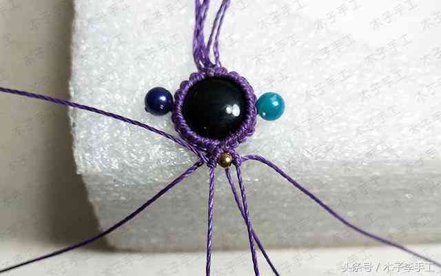33、把手链围成一个圈,用一根剪下来的长一点的线头在上面做单向平结