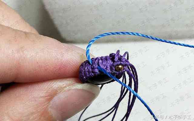 16、加的线一头为轴一头为绕线做一个右斜卷结,轴线短一点,绕线长一点