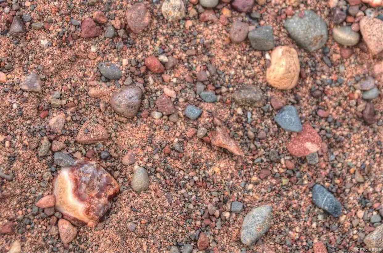 颜色多呈橘红色、褐红色、红色,在红色条带处可见密集排列的细小红色斑点。