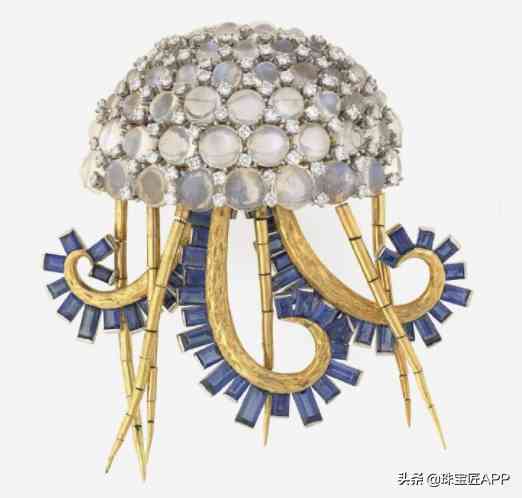 Jellyfish 胸针,by Jean Schlumberger for Tiffany & Co.,1967年.曾由美国园艺学家梅隆夫人收藏