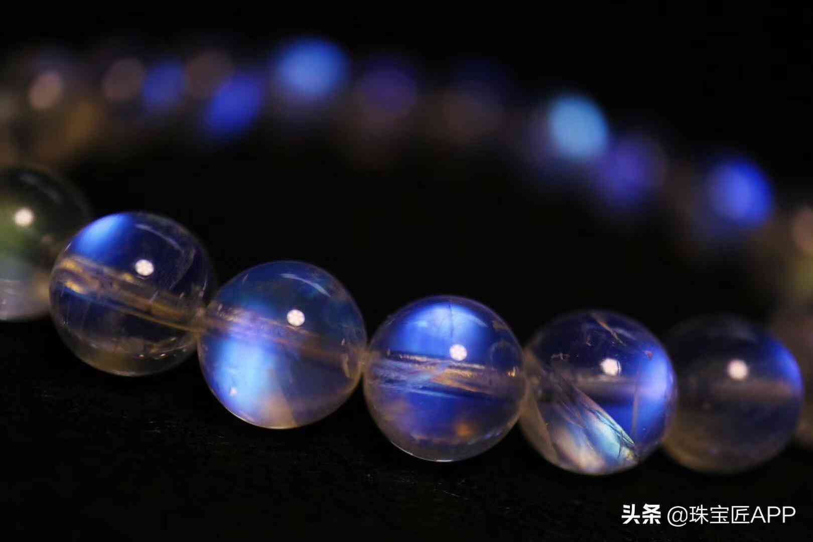 即随着月光石的转动,在某一角度可以见到白至蓝色的发光效应,就像蒙胧的月光。