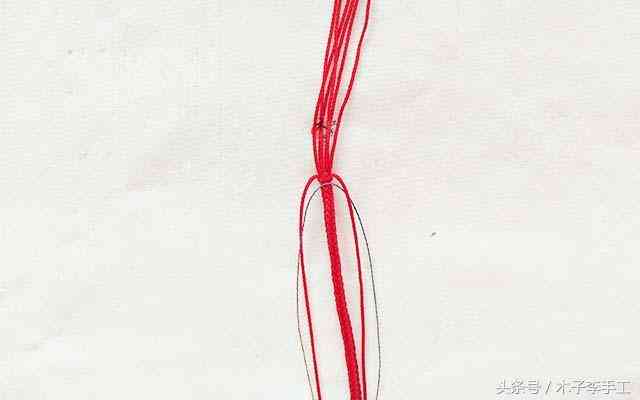 1、准备4根线,居中拧绳做扣眼,用金刚结固定。