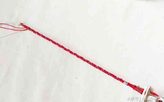 2、用这8根线编八股辫,做到合适手腕的长度再用金刚结固定。