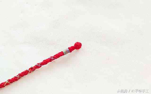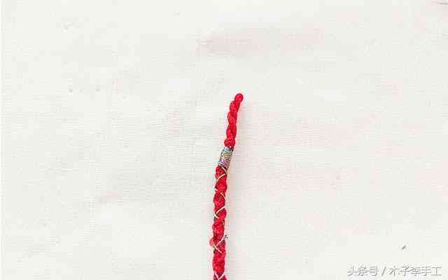 4、另取一根彩金线,包住第4步的线做一段0.5cm长的绕线