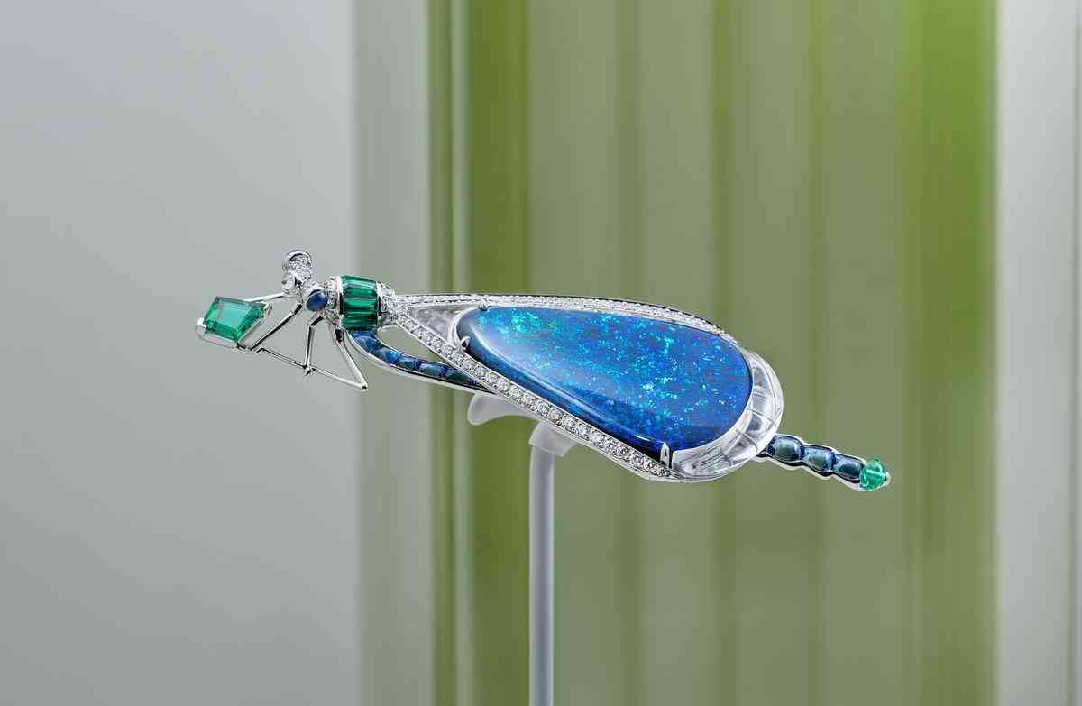 卡地亚在BEAUTÉS DU MONDE高级珠宝系列展览中展出Cordulia胸针,呈现蜻蜓的轻巧灵动。