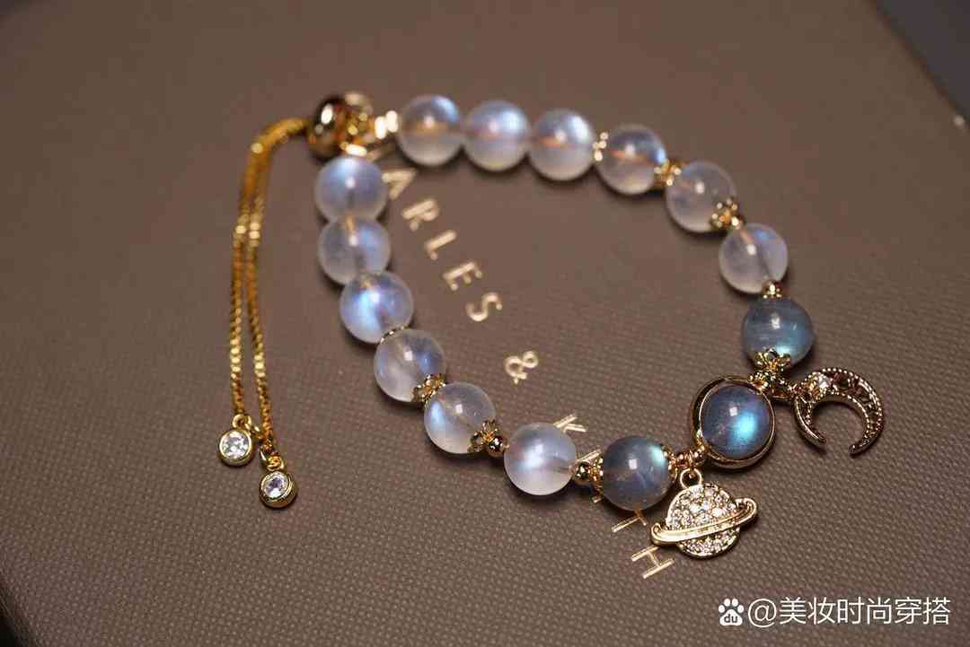 2️月光石行星手链,精品蓝月光搭配行星和月亮挂坠,白月光的精致美