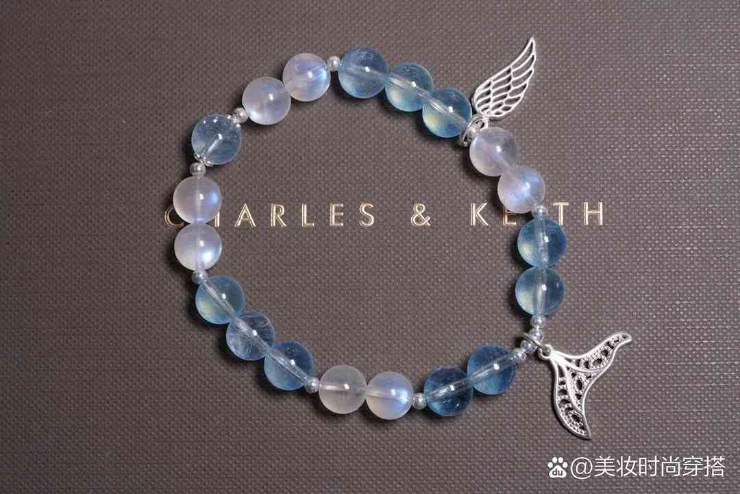 3️海蓝宝月光石搭配的海鸟和鱼水晶手链,灵感来自周董的《珊瑚海》,海鸟和鱼相爱,只是一场意外?