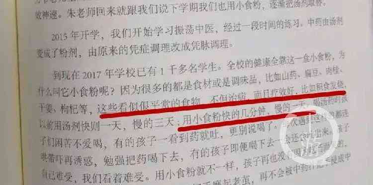 据了解,2015年开学,该校学生们便开始学习S中医,中药变成了“小食粉”,原来的凭证调理改成凭脉调理。除了让学生们服用”小食粉”外,学校还让学生之间互相诊脉,并为对方配制”小食粉“治病。校方不仅发布照片宣传,还拍摄了视频在家长群、中医爱好者中广泛宣传。