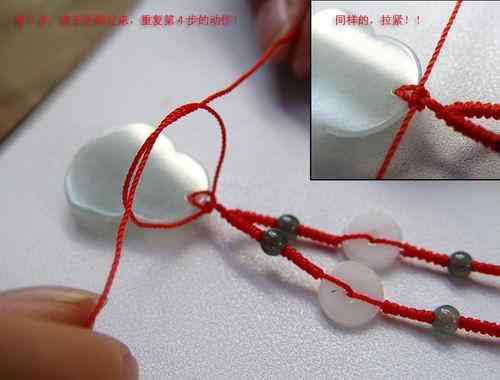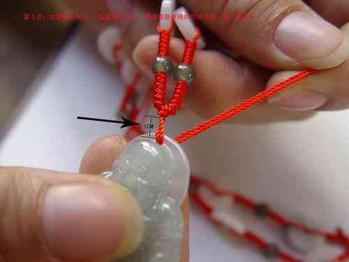 4 将绳端打开,绕到另一边打一个结,注意一定是玉器挂件的背面打结,因为结放在前面比较影响玉的美观噢!