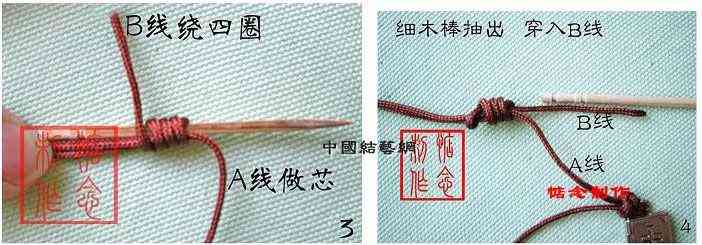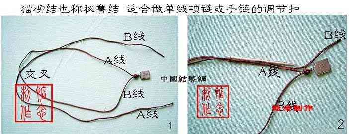下面是由惦念老师制作的项链结尾处活扣,猫柳结的编法