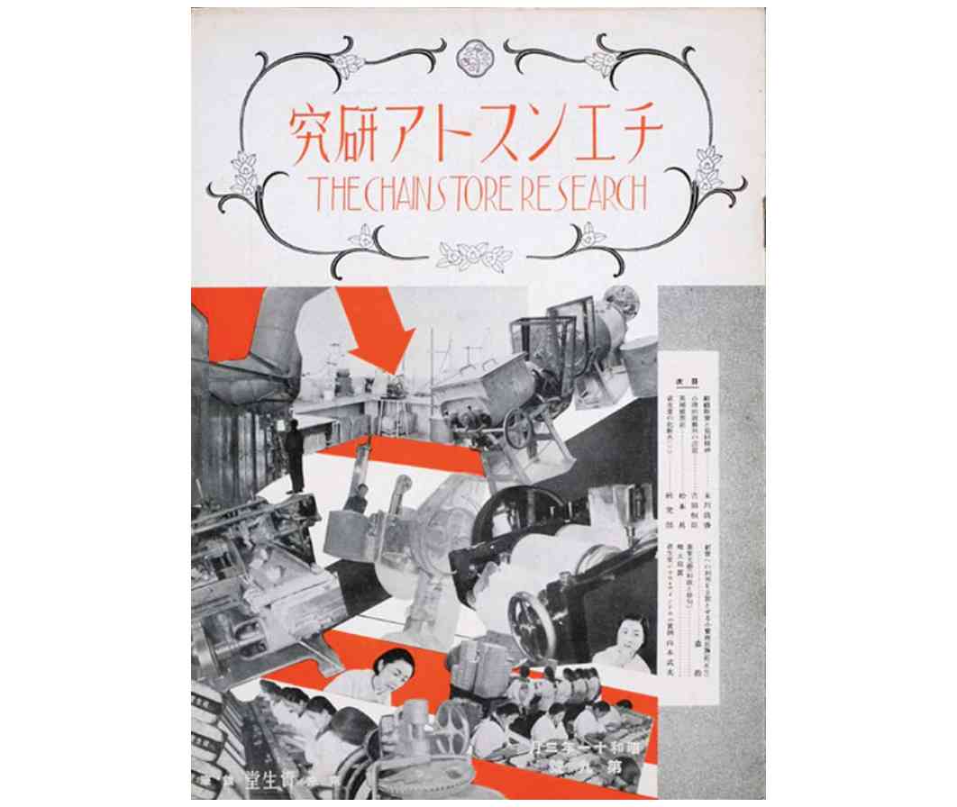 1936年资生堂在内部期刊就使用非常大胆的蒙太奇,来展示企业的工业技术和女工,配合鲜艳的橙色箭头,形成碎片化动感,现在看着依然毫不过时。
