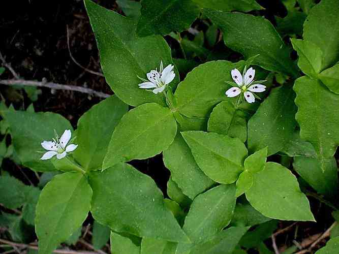 二是叶对生,叶形多变,茎顶端叶稍宽,卵形或卵状披针形,有时菱状卵形,长4公分左右,叶边全缘或微波状,光滑无毛;茎中部叶披针形或条状披针形,长3公分左右;基部叶鳞片状,窄长倒披针形,叶边全缘,无毛。