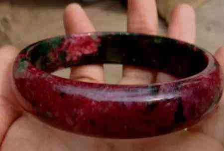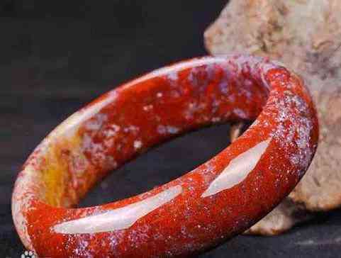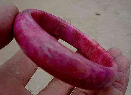 这是山东(潍坊)产玛瑙手镯,乍看与挑花玉很相似。但仔细看它是有条带结构的。