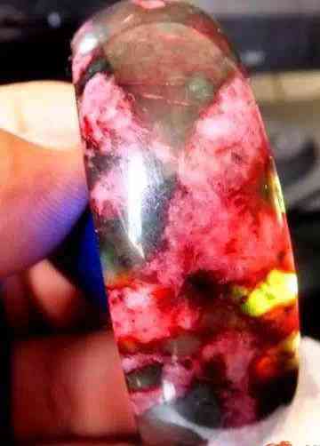 桃花玉,也称桃花石。产于青海省祁连山一带。该石质地、硬度极似翡翠,又称粉色的翠。石质微透明,富有玻璃光泽。石中含多种金属矿物成分,同一石上呈现互不渗透的不同颜色或互相渗透的混合颜色,经加工抛光,呈鲜艳的桃红色并间杂黑色的纹饰。桃花玉为原矿状分布,开采后其切开面呈黑色、绿色、淡蓝色等线条有机组合,纹理清晰,画面组合协调,色美质丽,可与彩玉石媲美,颇具观赏价值。