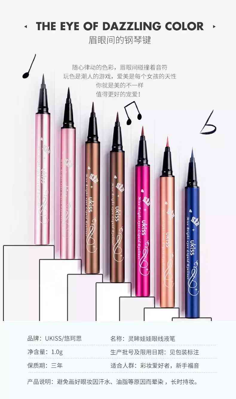 UKISS的眼线笔在国货中算是非常好用啦,好多小仙女应该会买它家的常规色的眼线笔,它家还有这种彩色的哦~相比上面介绍的眼线胶笔,这种可以画出细细的更精致的妆容,防水防汗不晕染的好特质非常适合去参加派对,疯一整夜都不用担心成熊猫眼呢~