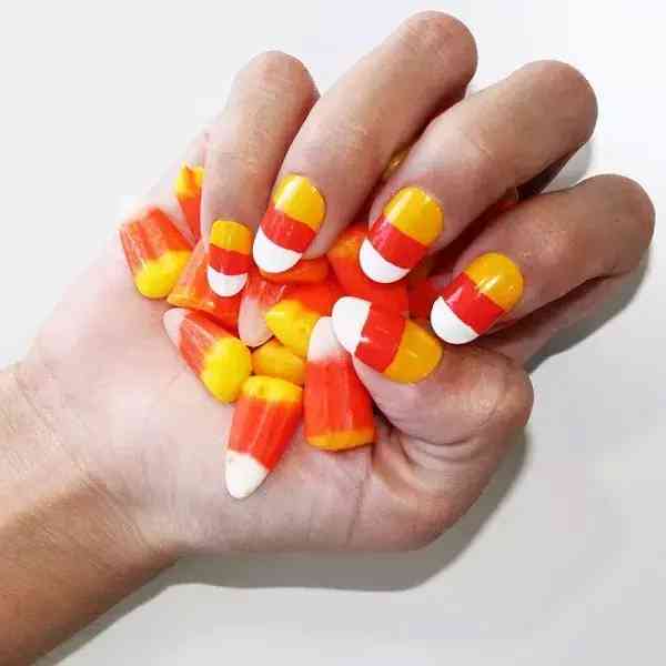 当你去讨糖吃时,伸出糖果一般的美甲,谁还会拒绝把糖果送给你呢?即使参加万圣节派对,这样的美甲也是应景又别致的。