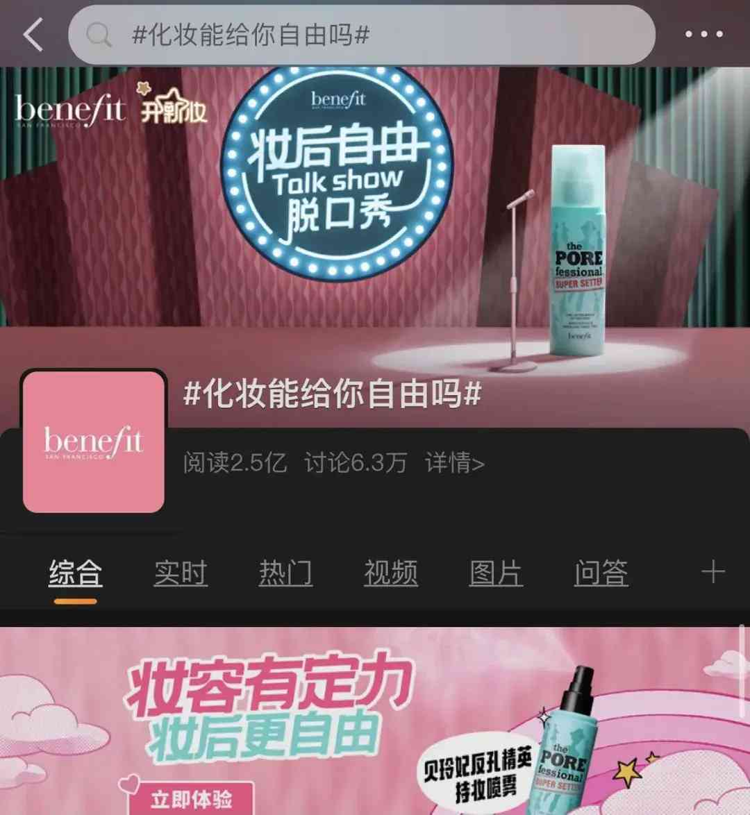 截止到《华丽志》发稿前,贝玲妃在微博发起的#化妆能给你自由吗#话题,阅读量已经达到2.5亿,讨论达6.3万。