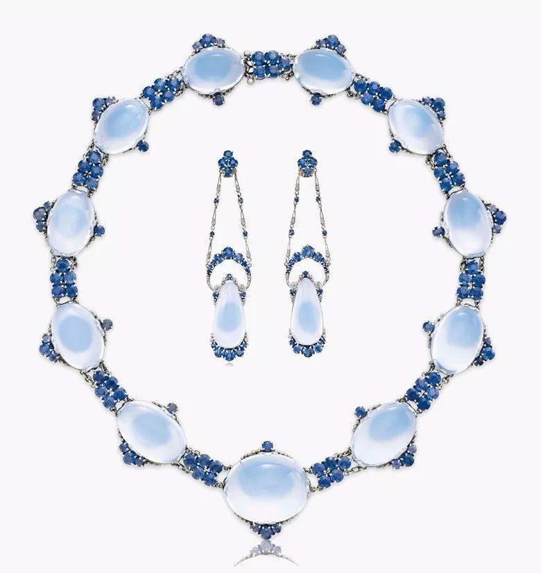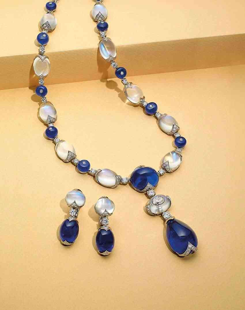 宝格丽蓝宝石、月光石项链、耳饰套装