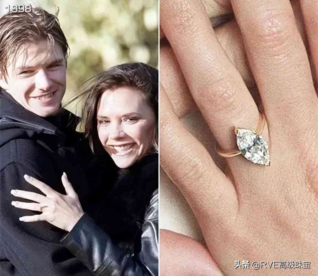 1998年球星贝克汉姆拿着这枚3克拉的马眼型钻戒向歌手维多利亚求了婚,戒指来自英国珠宝商Boodle&Donthorne,价值6.5万镑。