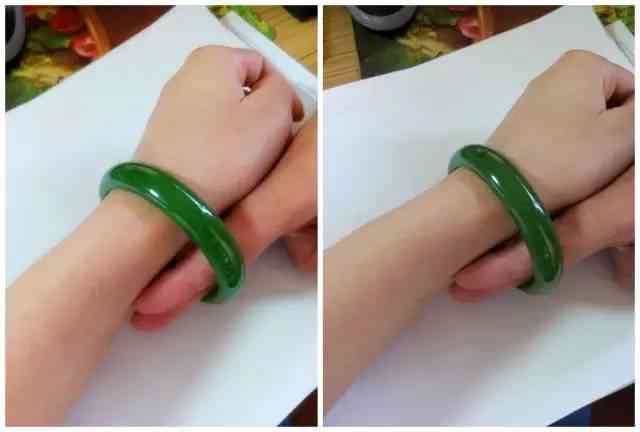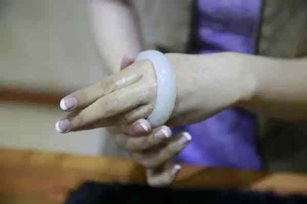选择手镯,一定要大小合适,特别是对于不能打开和伸缩调整的玉手镯,合适的意思是,你借助上面的方法费些力气能戴进去和摘下来;戴上之后手镯和手腕之间最好可以伸进1-2个手指,太紧,摘戴就有困难了,太松了会磕碰。