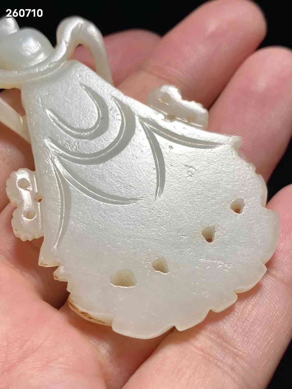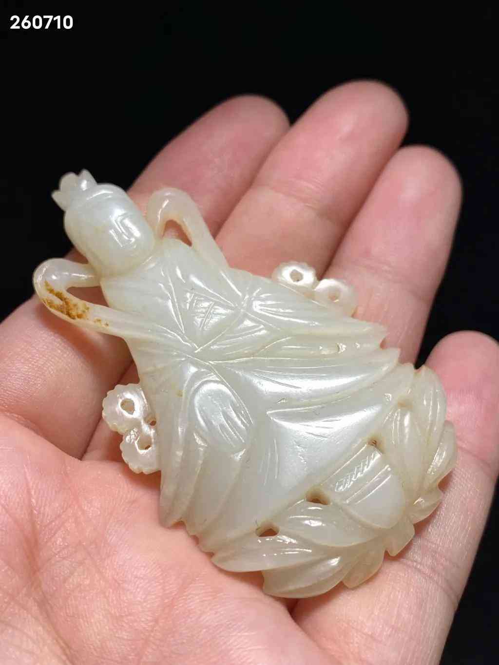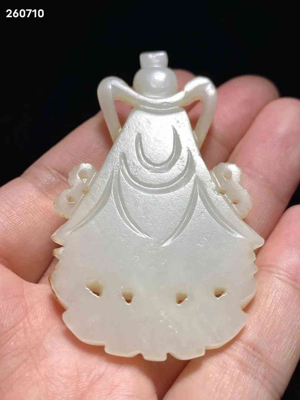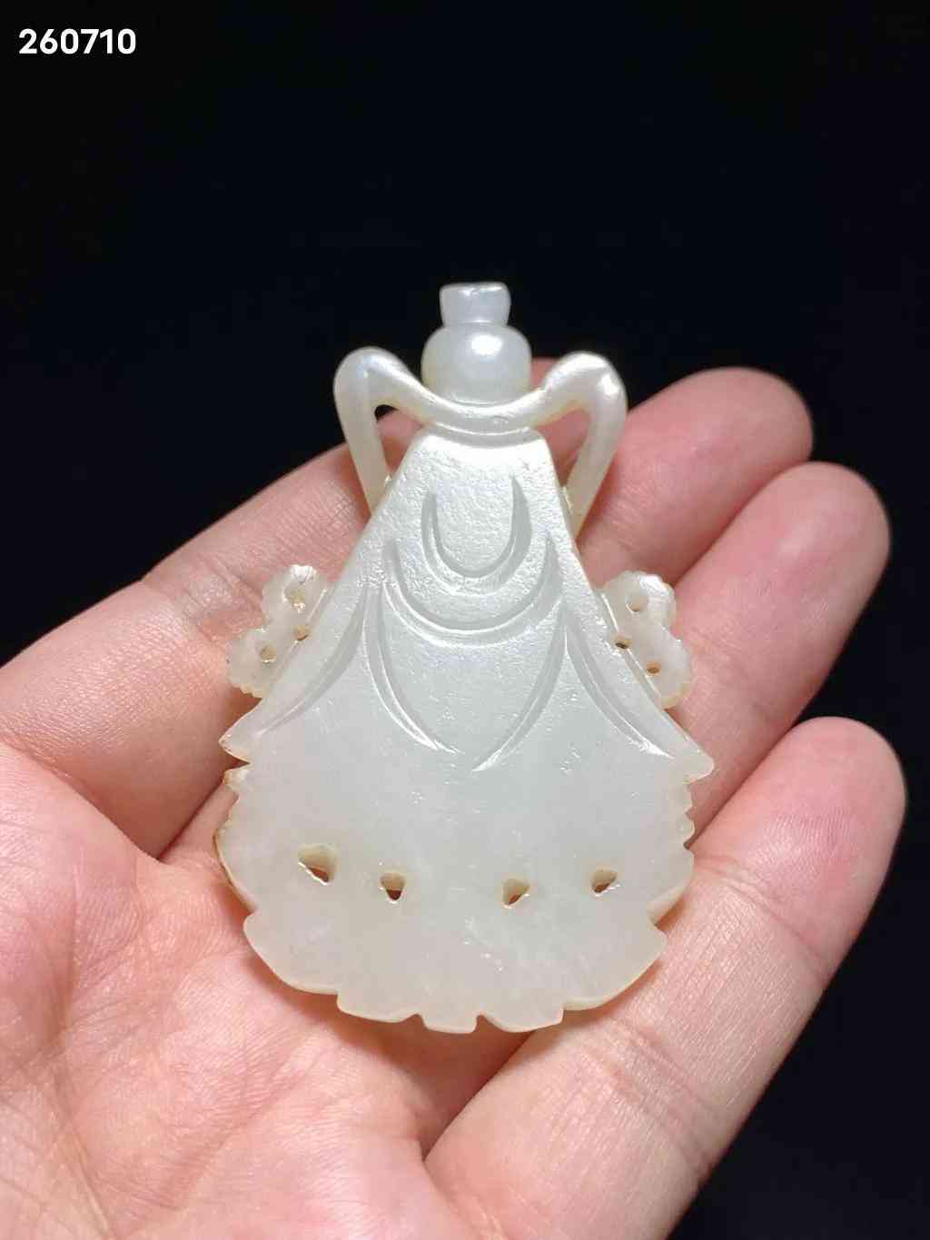 明 和田玉籽料 白玉 玉莲花座佛 玉观音 挂件:长:4.2 宽:0.8 高:7.2 厘米 重:35克 玉质洁白温润,质地精良,包浆自然古朴。观音大士结跏趺而坐于莲台之上,头梳高髻,饰以环饰,为唐代流行之发式,身穿交襟及地长袍,宽水袖过膝,右手当胸结说法印,衣饰皱褶描摹细致,垂坠感立体。面额饱满,连眉直鼻,双目低垂,静妙端庄,面部安静慈祥,眉间白毫相表示佛光普照三千大千世界。玉质青白,佛像发髻高耸,头戴宝冠,面相庄严,结禅定印,全跏趺坐于莲座之上。此件造型玲珑精巧,刻画细腻生动,形神兼备,包浆古旧,佩及于身,福佑安康。