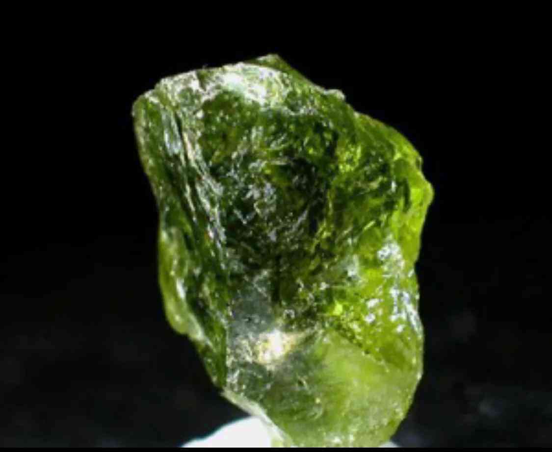 橄榄石是一种绿中带黄,类似橄榄色的中低档宝石,市场上最常见的是用有色玻璃制成的橄榄石仿冒品。两者主要的区别是,橄榄石具有明显的“双影”,而玻璃没有;橄榄石内往往可见结晶质包体,玻璃内只含气泡;橄榄石的比重3.5,硬度为7,比玻璃的比重(2.6)和硬度(6)都要大。