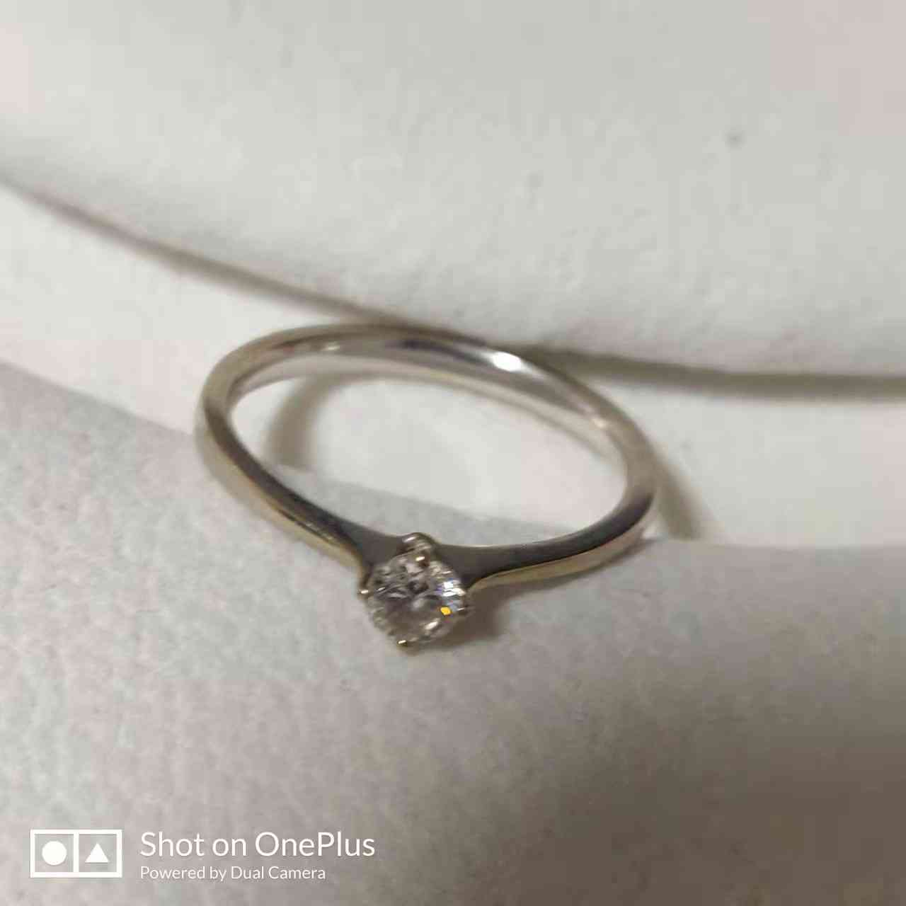 这个单钻的是周大福的品牌,10年前网购的。打折后的价格是3600元,20分的大小。别看钻石很小,但是却是异常闪亮,工作休闲戴着低调又精致,我觉得很值。虽然我的一些同事说这么小的钻石有点贵了,但是我觉得这个是真的。
