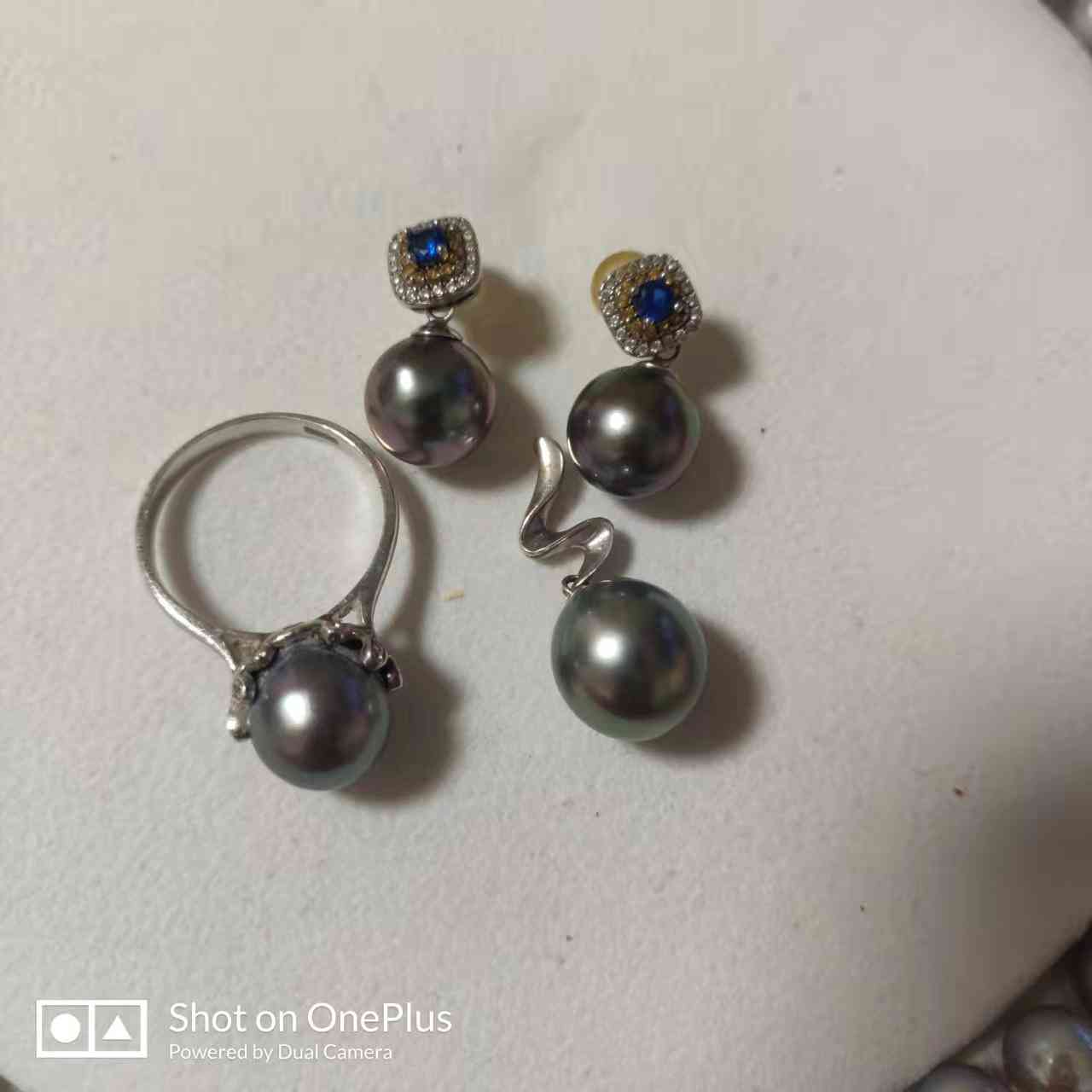 耳环和戒指合起来的价格是1500元左右,银镶嵌,所以便宜一些,这个我能肯定不是大溪地的,至于哪的珍珠,是不是黑珍珠我不知道。