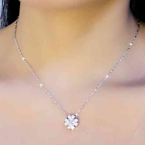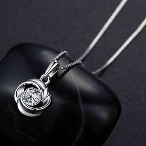 浪漫的玫瑰型项链,方中带圆,圆中带方,外形简洁,大方,标准银材质,带上不过敏,不褪色。采用的是包镶工艺,钻石更加稳固,不容易掉落。