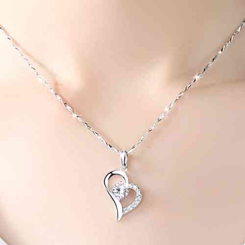 这款项链比较精致,看起来更有女人味儿。心形镶钻,送给女朋友,想跟她说把心交给你。戴上这款项链更有气质,相信戴上它,你的心情会更好。