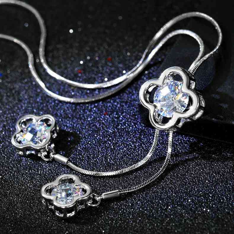 这款项链是四叶草毛衣链儿,造型很时尚大方,现在还穿着毛衣配上它,十分的好看,不会让你的毛衣看上去单调,同时也显得很有女人味儿。经典的流苏设计,复古,优雅。