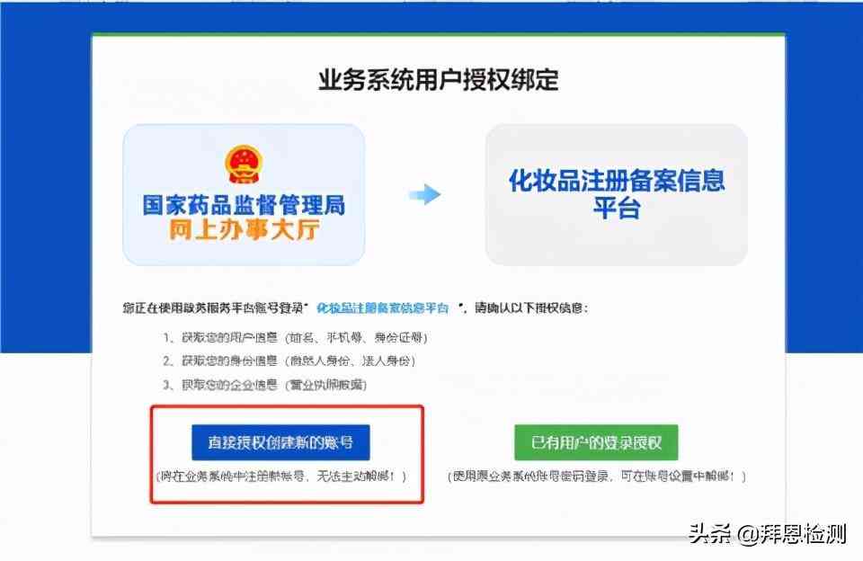 没有账号的用户,首先要到在国家药监局网上办事大厅注册设置登录的用户名密码,认证身份后,获取相应的权限。注册账户分为两类,法人用户和个人(自然人)用户。在待授权系统中找到“化妆品注册备案信息平台”,点完成授权。用户领取账号后,即可登陆信息服务平台。