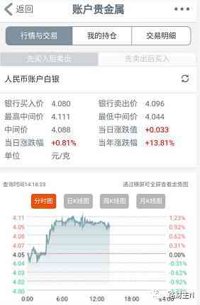 再次以工行为例,其中人民币账户白银的单边点差为0.016元/克(过去是0.04元/克),美元账户白银的单边点差为0.15美元/盎司。也就是说,我今天4.096元买入1g 纸白银,我突然心情不好,不想要了,还给银行,只能收回来4.080元。