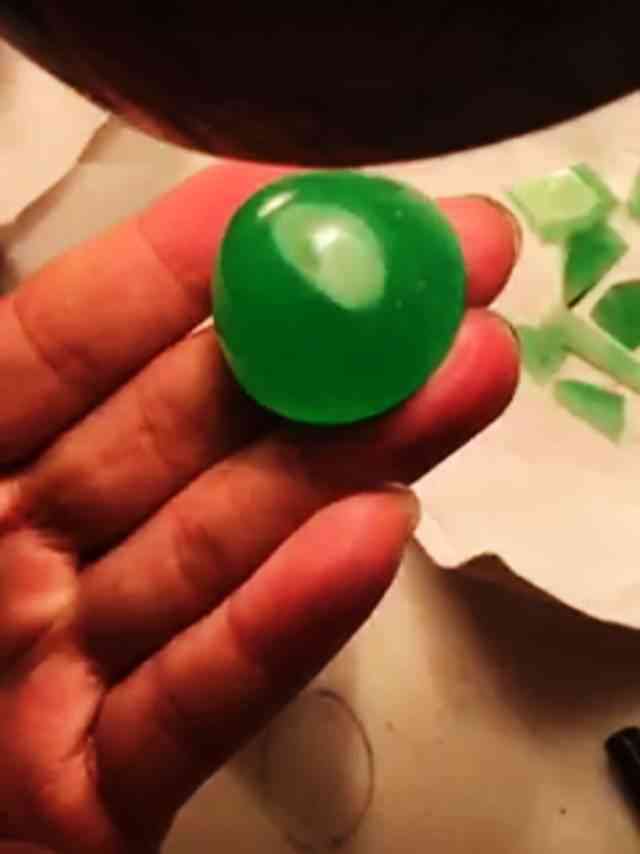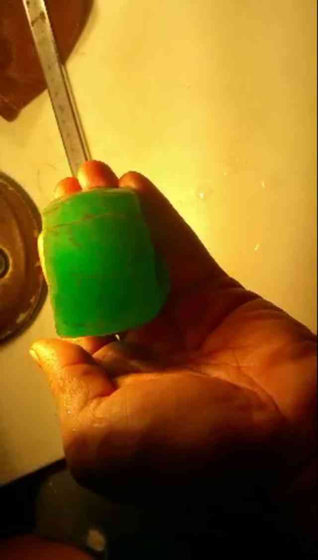 .帝王绿翡翠,一刀下去,出来了,出来了,颜色全部进去了。