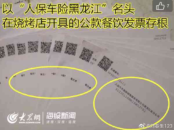 刘春生告诉大众网海报新闻记者,2017年11月人保汽车保险销售服务有限公司黑龙江省分公司总经理赵岩.次在其烧烤店消费,当天便拿出2万元现金预存在刘春生店内表示之后会在刘春生店内定点吃饭,第二天在其店内开出了1万元的餐饮发票。此后,赵岩分别以“百丰汽车”与“人保车险黑龙江”名头,陆续在他的店内开具万余元餐饮发票。