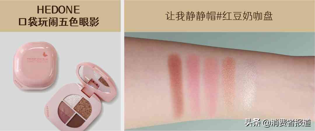 HEDONE这款也叫蝴蝶小电话眼影,粉嫩的颜色很温柔很少女,但又不会过于出格,颜色搭配融合得很好。