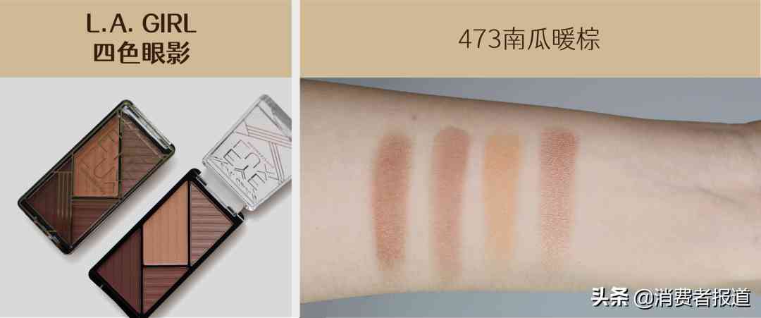 作为开架彩妆,L.A. GIRL的四色眼影人气颇高,这款473是奶呼呼的暖橘棕,非常适合秋冬季节。