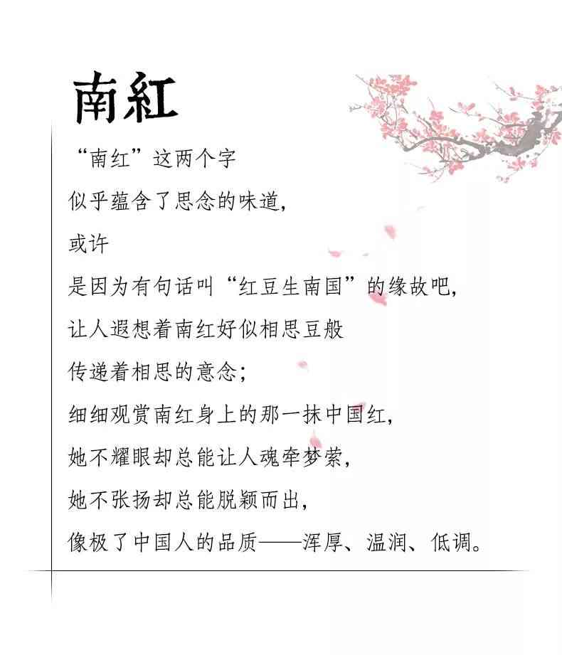 南疆山川,万寸岩骨一缕柔。尘土褪去,几抹胭脂红。执手望穿,未醉意先融。玉千种,阆苑仙葩,不及南红。