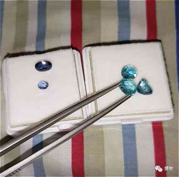 某位youtuber拿蓝宝石和蓝锆石做亮度闪度对比,右边大颗的蓝锆石明显胜出(左边个头小的那颗是蓝宝石)。图片来自:youtube.com