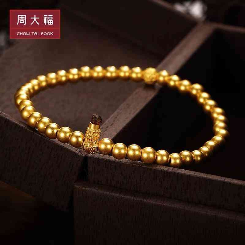 周大福福禄金珠古法黄金足金手链,福禄意思是幸福与爵禄,是汉族传统寓意纹样,福分与禄位。圆珠串联,寓意圆满无碍的智慧与功德。简单大方,佩戴者可约束身心,舒缓情绪,享福纳瑞。